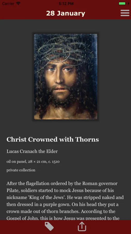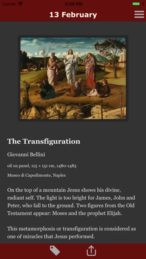 View a different work of art every day. The works are by great artists such as Rembrandt, Michelangelo and Caravaggio. All works refer to a biblical subject - the old texts have proven to be an inspiration for many masters.