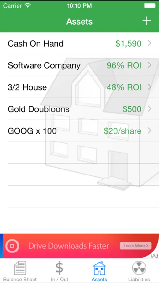 - Add and delete Assets, Liabilities - the app does all the math for you!