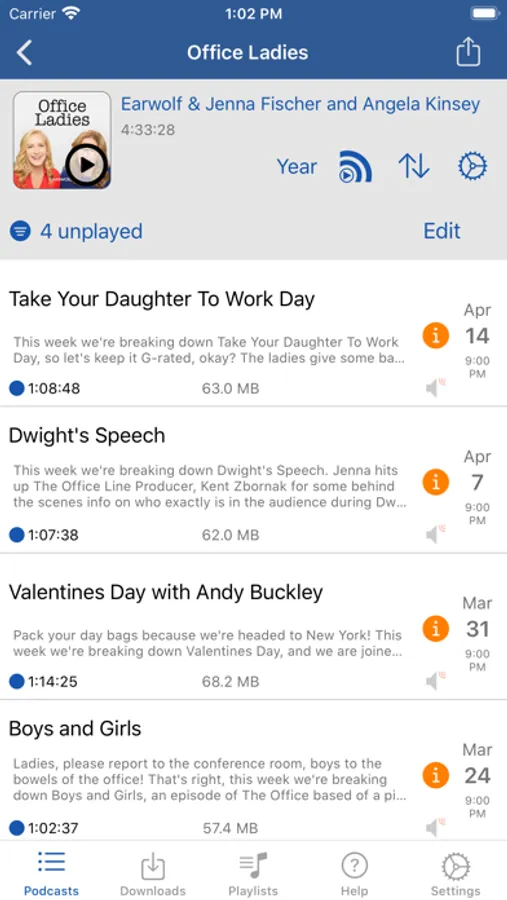 • Download episodes over WiFi or Cellular (on devices that have cellular).