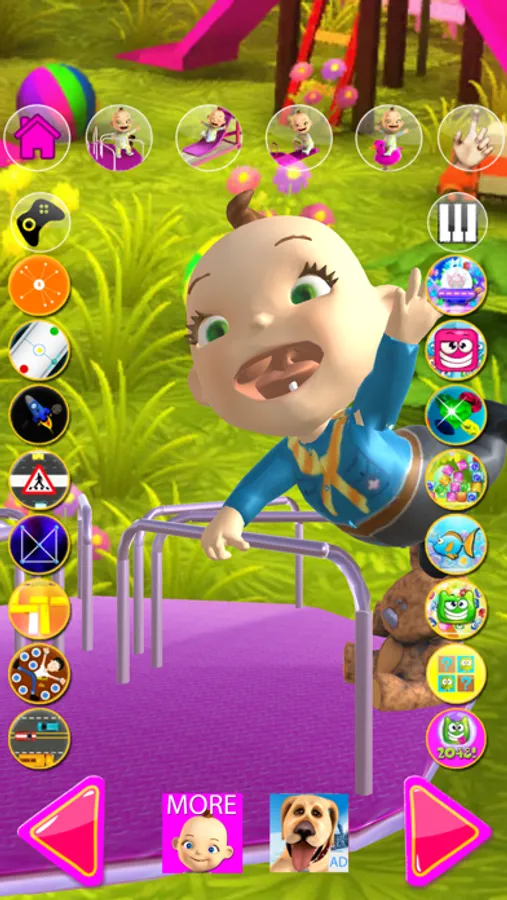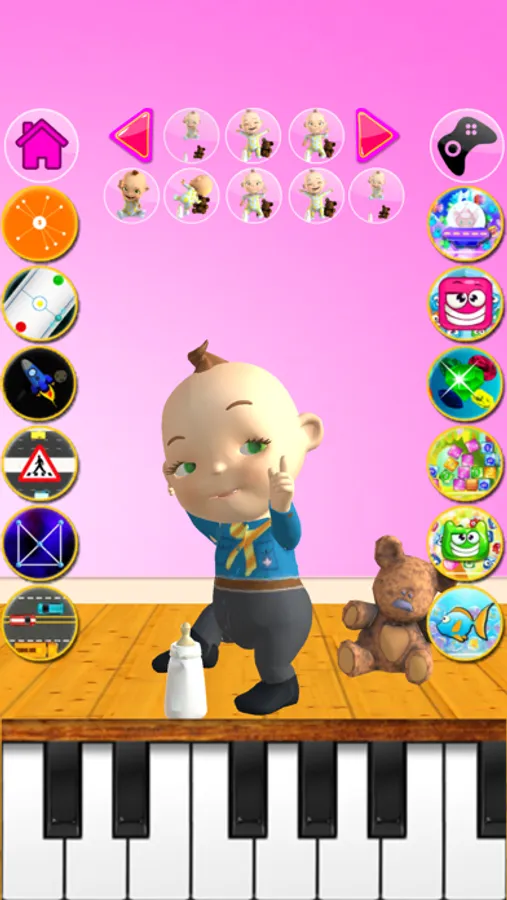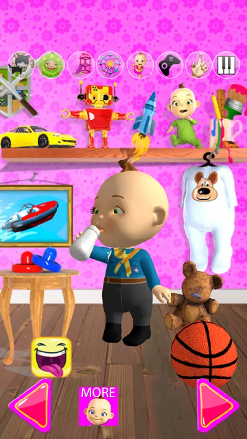 Talk to the Talking Babsy Baby girl. She answers with her funny voice and reacts to what you say or your touch. Babsy is a little baby that is taking her first steps in the world. As every kid she still needs a lot of loving care. Spend some time with her, feed her, calm her when she cries, play the piano and get to know her closer. With a lot of exciting inside games with many levels to play!