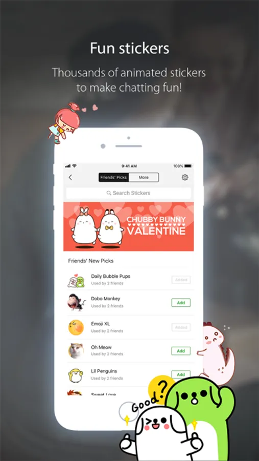 • STICKER GALLERY: Browse thousands of fun, animated stickers to help express yourself in chats, including stickers with your favorite cartoon and movie characters.