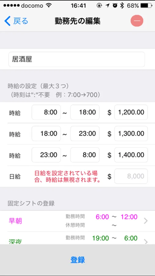 勤務先ごとにいくつでも固定シフトを作ることが 可能です。
