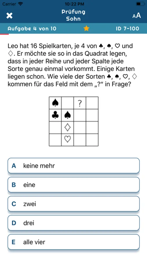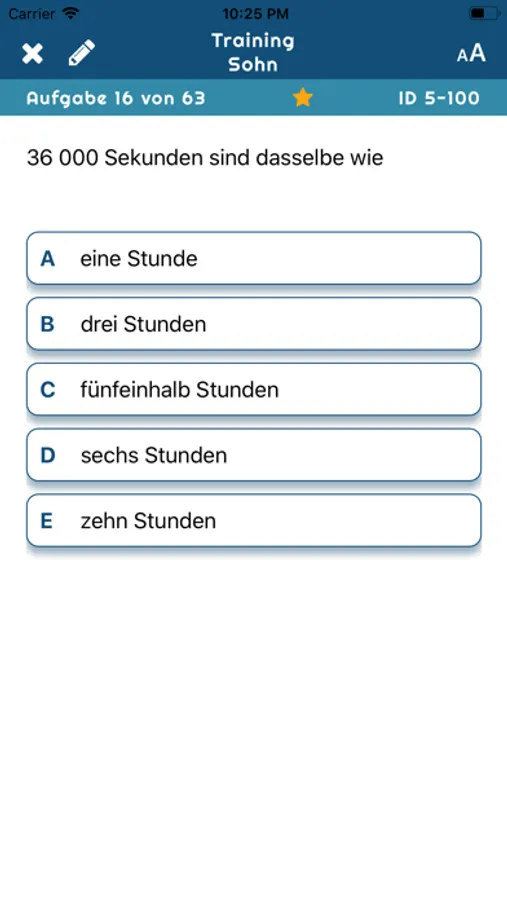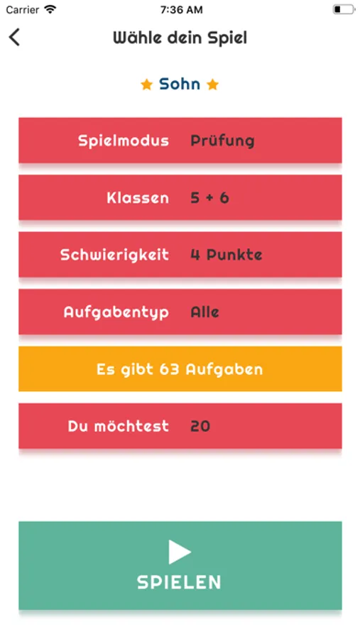 Du hast zwei Spielmöglichkeiten – Training und Prüfung. Zum Üben kannst du ohne Zeitbegrenzung Aufgaben lösen, auch jederzeit das Spiel unterbrechen und später fortsetzen.