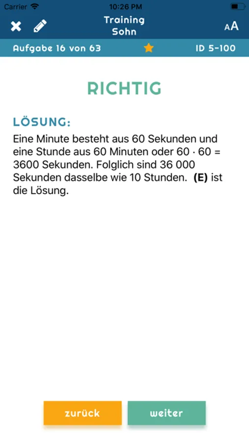 Wenn du nicht auf Anhieb die richtige Lösung findest, erhältst du eine zweite Chance und selbstverständlich werden dir dann die richtige Lösung und der Lösungsweg angezeigt.