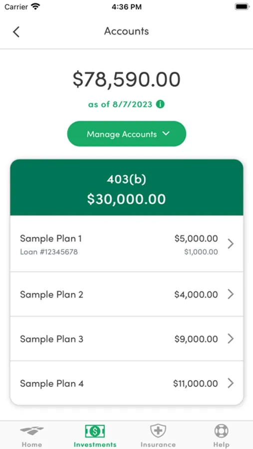 · View accounts, plans and investments