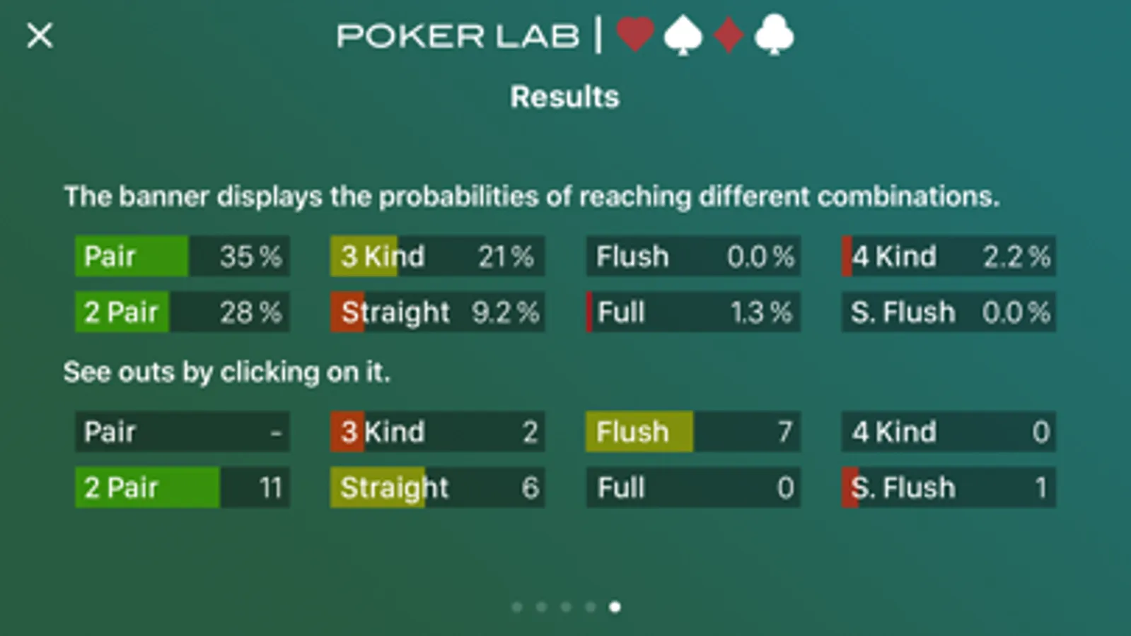 PokerLab Pro is an application which calculates odds and probabilities in Texas Hold'em Poker and Omaha Poker. It will tell you immediately everything you need to know to increase your chances of winning and stop gambling ! Don't tilt, when in doubt use Pokerlab Pro !