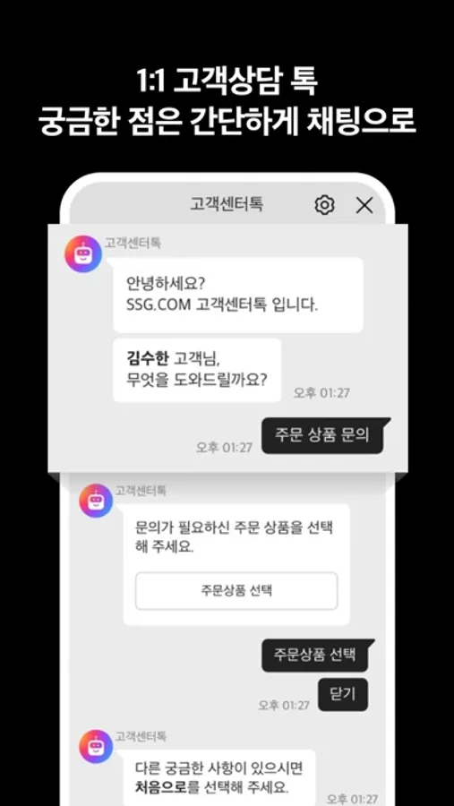 1:1 상담도 신세계몰에서 간편하고, 빠르게 해결할 수 있어요!