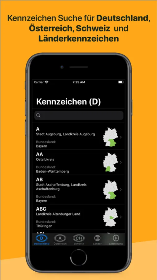 Zur Zeit können die KFZ-Kennzeichen für Deutschland sowie der Schweiz abgerufen werden.