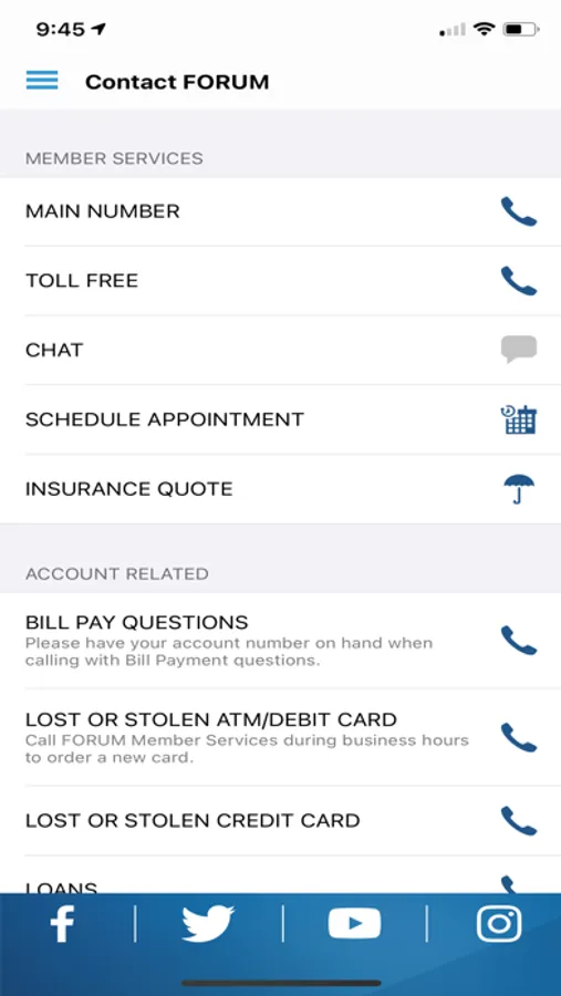 Manage your accounts conveniently and securely using Touch ID® or Face ID® with the FORUM mobile app. Enjoy on-the-go account access including mobile check deposits, finding convenient branch and ATM locations, receiving account alerts, paying bills, and more with FORUM’s easy-to-use app.