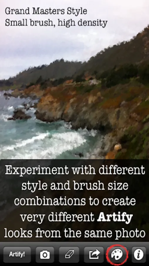 • Create unlimited Artified versions of your pics. Each time you "Artify!" you create a unique interpretation of the image