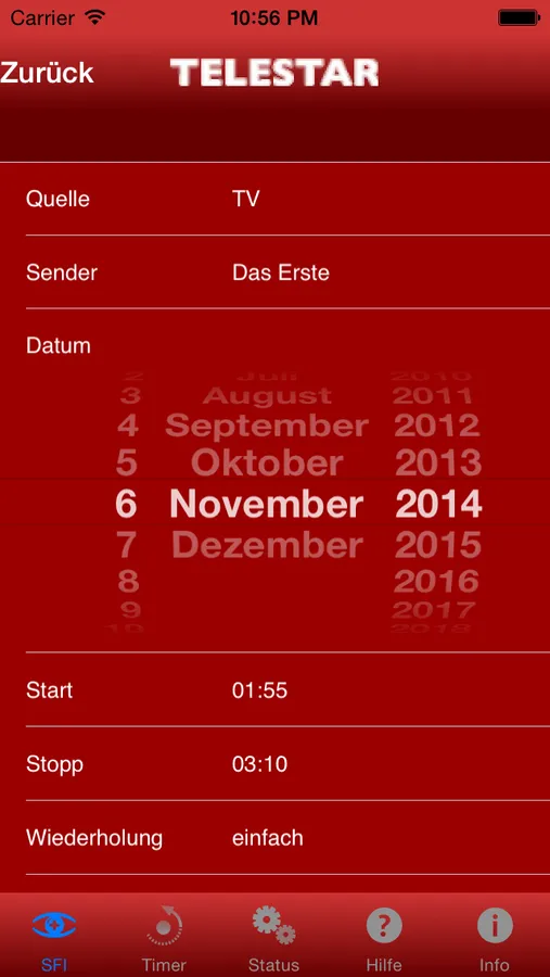 Aufnahmetimer können mit dieser App ganz bequem von unterwegs aus programmiert werden. Sollte man sich einmal nicht sicher sein, wann die Lieblingssendung beginnt, die man aufzeichnen möchte, können mit der Version 2.0 die SFI Informationen des Senders (sofern angeboten) eingesehen werden. So kann man auch über sein Smartphone nützliche Hintergrundinfos zu Sendungen abfragen und direkt aus der elektronischen Programmzeitschrift heraus programmieren.