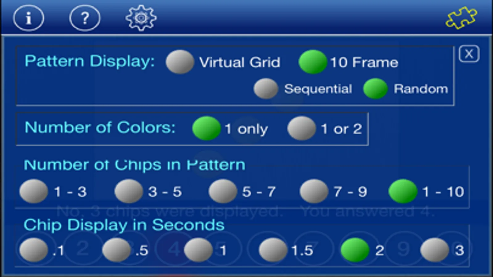 Pattern Sets is one app in the NumberSense series designed at Augustana College in Rock Island, Illinois for K-2 grade students. In addition to the support website, see www.augustana.edu/numbersense for information about the project.