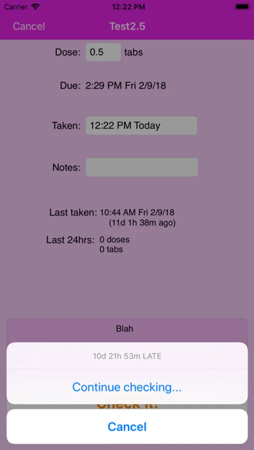 (8) You can UNDO any Taken or Skipped entry. Go to the log, select the entry and click the trash can. Any such changes to the log will result in a recalculation of the medication schedules.