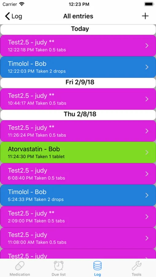 (5) The LOG is maintained so you or others can review which doses you took and when, which were accompanied by warnings and which were missed. You can add your own notes to each log entry (eg temperature). You can add your own log entries to record any other relevant events eg visit to the doctor. This log can be exported to your pc.