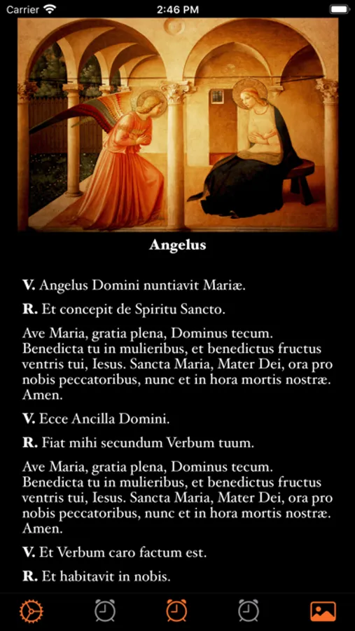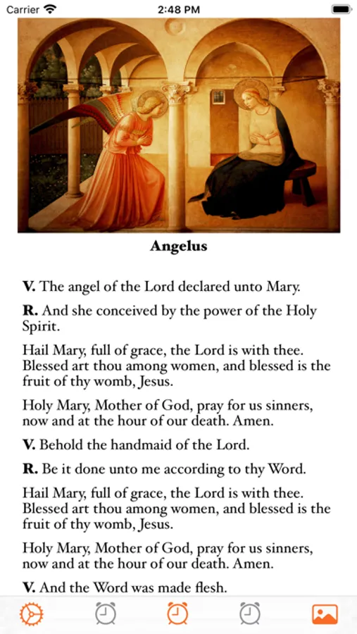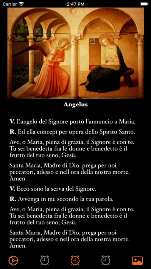The PocketAngelus app brings this daily devotion with you wherever you go, with timely bells when you want them at 6 a.m., noon, and 6 p.m or anytime with a custom alarm.