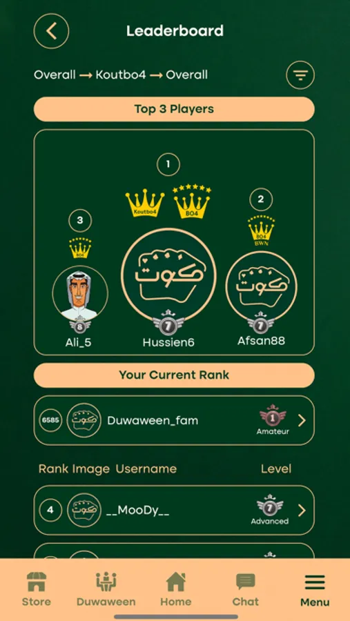 Learn and enjoy playing Kout against your friends or enjoy challenging other people in our daily friendly tournaments, and play either the 4 player or 6 players variant of the game.
