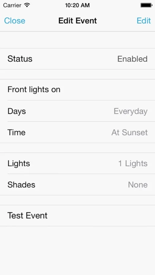 Schedule scenes to happen automatically at set times of day, or based on sunrise and sunset. Turn on your porch light at dusk, turn it off at dawn, or open your shades in the morning to wake up with the sun.