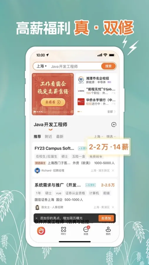 更多的求职者选择前程无忧求职,找到了更好福利、更高薪资的工作。