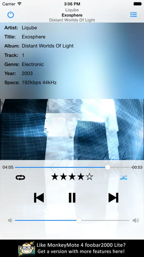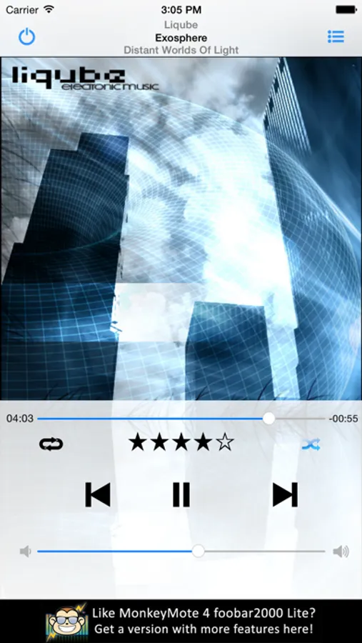 MonkeyMote Music Remote Lite allows you to freely use some of the many features the ad-free full version of MonkeyMote has to offer.