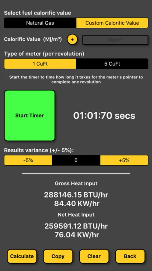 - Choose from Natural Gas, enter you own calorific values or select from a predefined list.