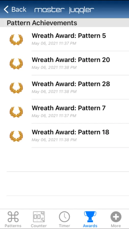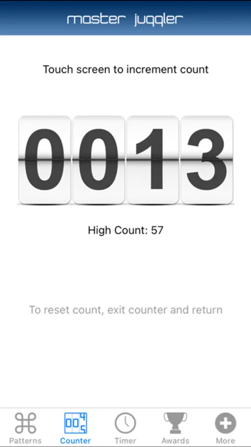 Master Juggler is a tool to help you master the seemingly difficult task of juggling a soccer ball. Use Master Juggler to help you keep track of your juggling progress. The Counter simply helps you keep track of the number of touches on the ball. Either you or a friend can increment the counter by hitting the screen. The Timer runs while you juggle. Set the amount of minutes, start the timer, and start juggling. It will notify you when your time is up. Learning Patterns makes your job easier. Simply follow the patterns supplied. When you can consistently complete each pattern, start doing two different patterns in a row, then three, then four, etc... All of your progress is saved in the Achievements section for review. Earn awards for your juggling accomplishments: Amateur Award, Silver Cup Award, Gold Cup Award, Grand Cup Award, Master Juggler Shield, and Master Juggler Crown.