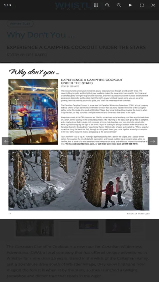 * Access to Whistler Traveller magazine.