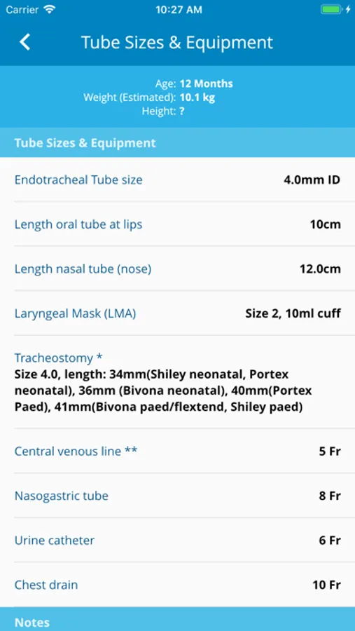 - Calculated Paediatric Tube Sizes & Equipment including tracheostomy tubes