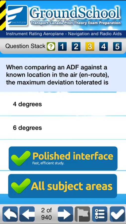 We have been providing test preparation for Transport Canada theory exams since 1997 through our CanadaPilot.com website. This app brings the same reliable and representative questions and detailed explanations to your iOS device while maintaining the high level of usability that you’ve come to expect from our applications. This app is 100% all that you need to study to prepare for your Transport Canada INRAT theory exam.