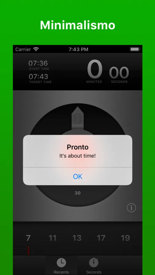 Pronto is a minute-based timer app. It fits in perfectly as your any-time reminder.