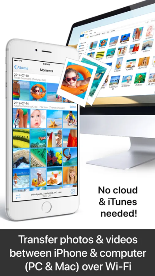 • Directly transfer / backup photos & videos from iPhone / iPad to Windows PC or Mac. Photos & videos are transferred directly over the local Wi-Fi network. No Internet or cloud are required.