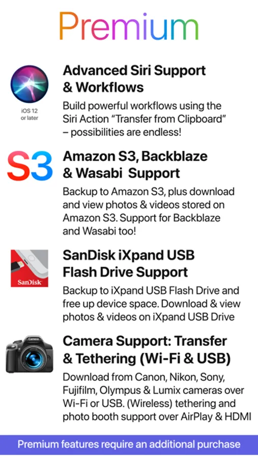 Premium features require an additional purchase (one-time purchase or subscription with free trial).
