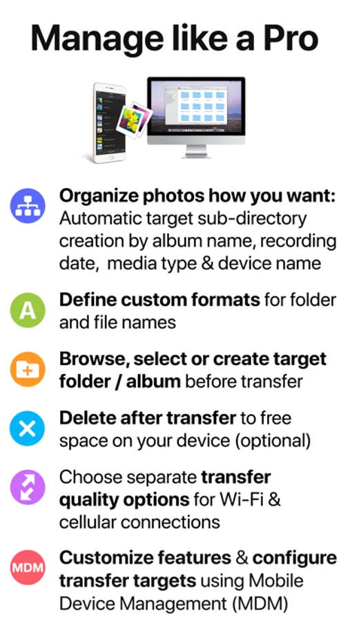 ** Managed App Configuration over MDM or using a settings file (config.photosync-app.com)