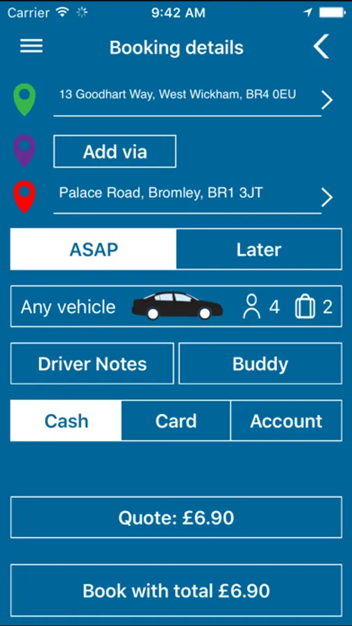 This App Allows you to book a Private Hire vehicle from Cannon Cars.