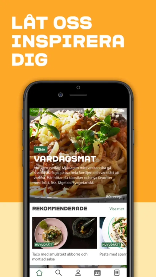 Frukost, lunch, brunch, förrätt, middag eller dessert? Lågt fett, snabbt eller vegetariskt recept? Appen har något för alla. Sök efter en specifik ingrediens eller namnet på en maträtt och välj bland de många populära recepten. Du kan också hitta inspiration i våra många teman - till exempel till din studentfest, grillkväll, julmiddag, födelsedag, konfirmation eller nyårsmeny. Eller så kan du inspireras av nya rätter med de bästa säsongsbetonade ingredienserna.