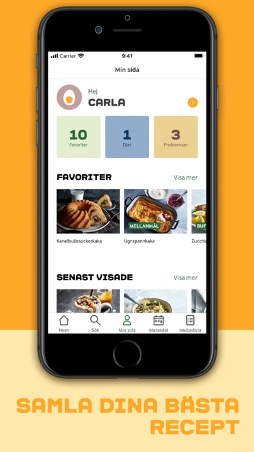 • Få förslag på recept baserat på dina preferenser