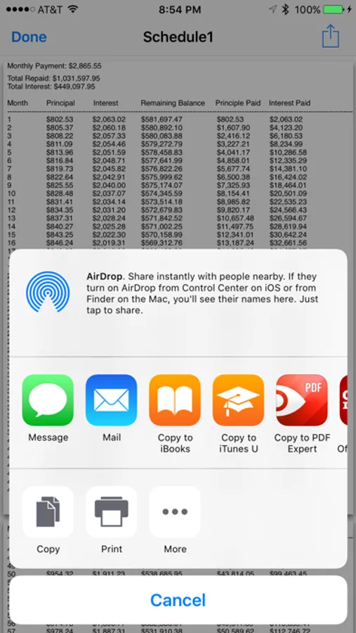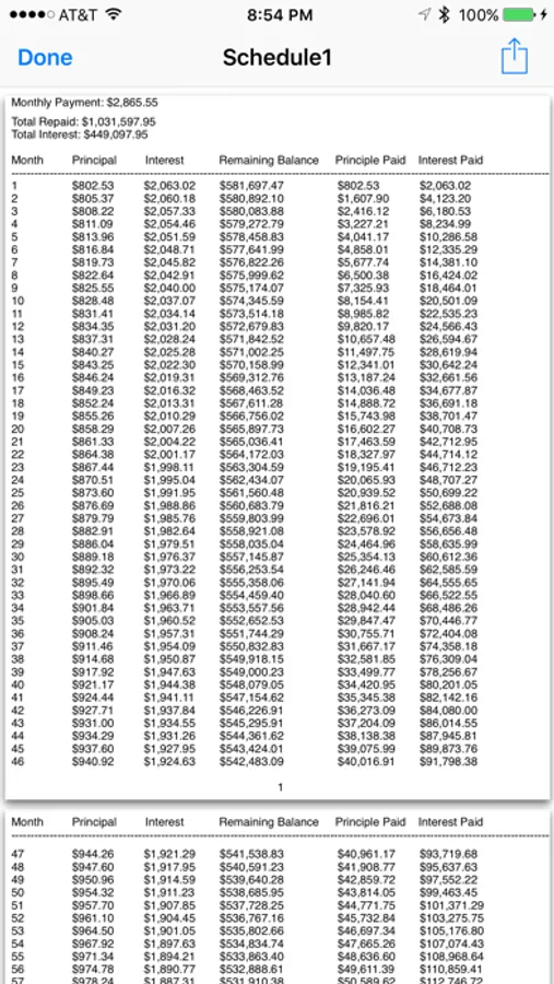 An in-app purchase has been added to remove ads, generate a .pdf file of the amortization schedule, and export it to any app installed on your device that supports .pdf files (including email). It also greatly improves the amortization schedule by adding remaining balance, principle paid to date, and interest paid to date. Very useful when comparing loans!