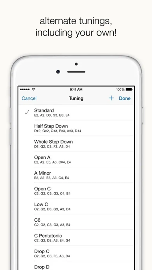 - use alternate tunings. ChordMate comes with the most common tunings, and you can add your own.