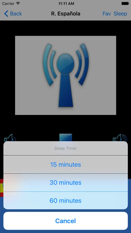 A sleep timer can be used to limit the music to 15, 30, or 60 minutes.