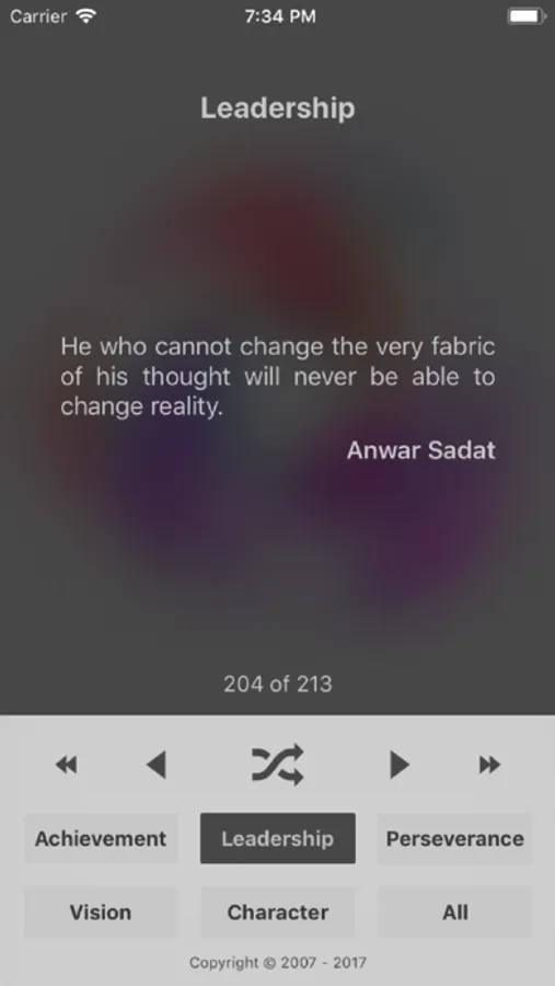 This application is not intended to be an inspirational quote database searchable by who said what. Instead, it is a series of electronic flash cards analogous to Brian Eno and Peter Schmidt's "Oblique Strategies" card deck - but much more acutely prescriptive.