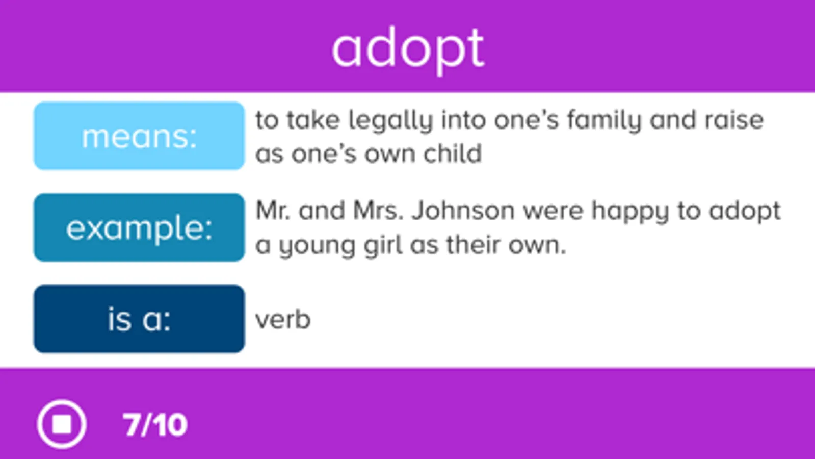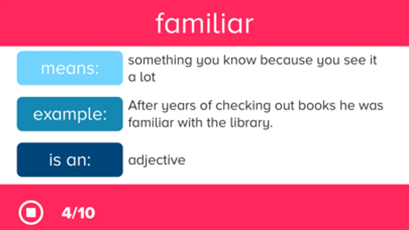 • Study hundreds of vocabulary words at your own pace with guided step-by-step learning
