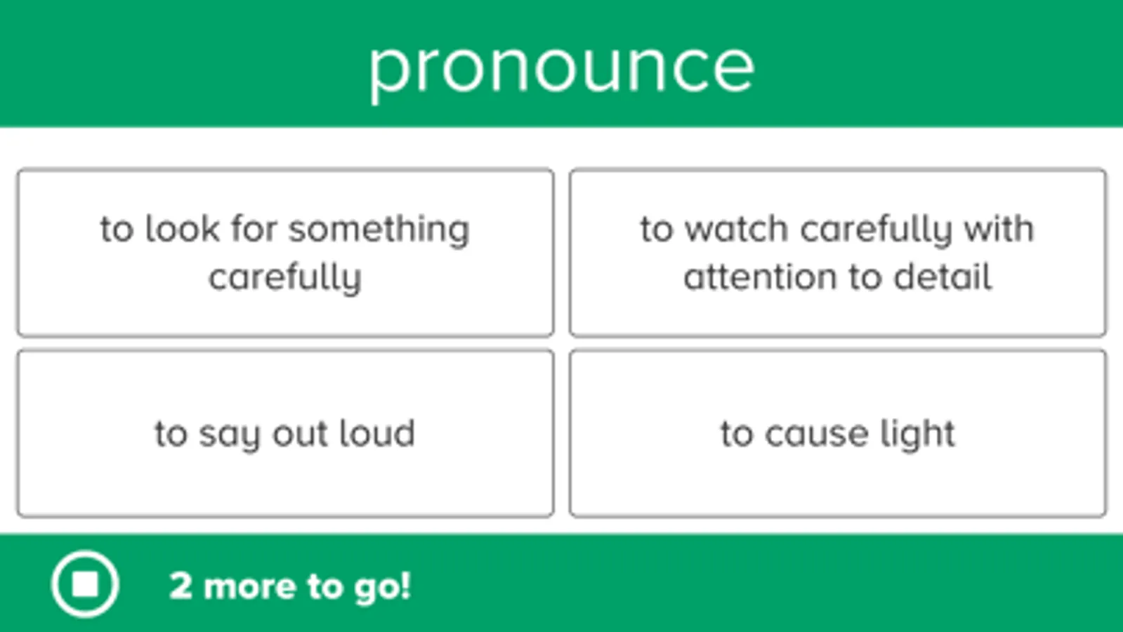 • Just like a set of flash cards, any word a student gets wrong on one of the practice quizzes is returned to the "back of the deck" and will be asked again to make sure the student can answer every word in that section correctly