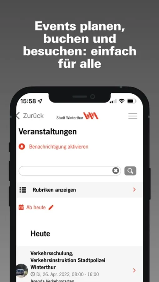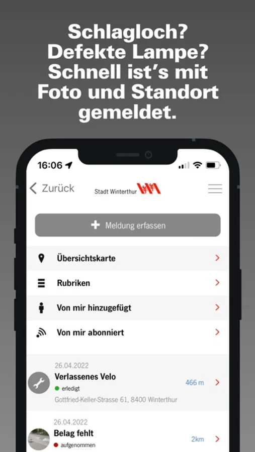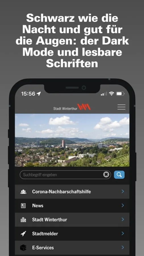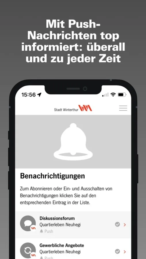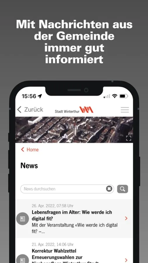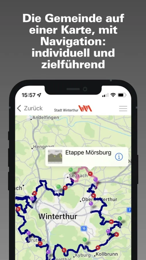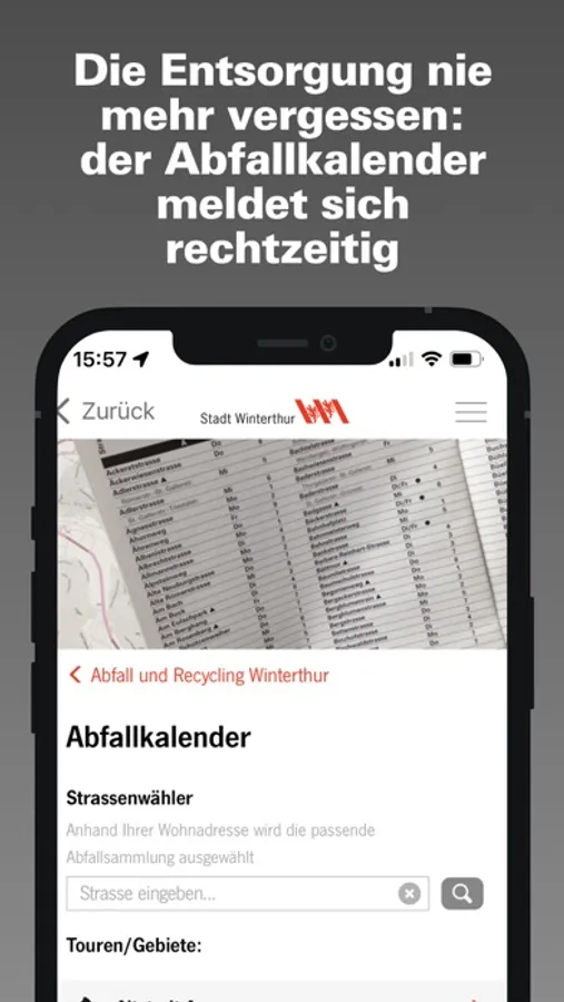 Die App der Stadt Winterthur umfasst Informationen aus Politik und Kultur. Sie finden u.a. die Stadt-News und das ganze Thema der Abfallentsorgung mit digitalem Abfallkalender (beides auch als Push- oder E-Mail möglich), ein Verzeichnis von kulturellen Einrichtungen oder Sportanlagen, den Stadtplan und den Rundweg Winterthur.