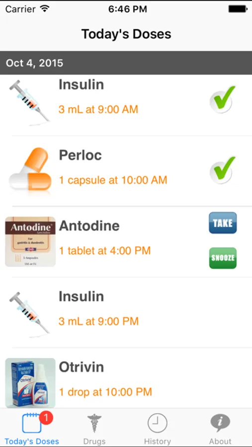 - Today's Doses: DoseOrganizer shows notifications about doses that are supposed to be daily taken with a simple interface that ease on the user to take their medications.