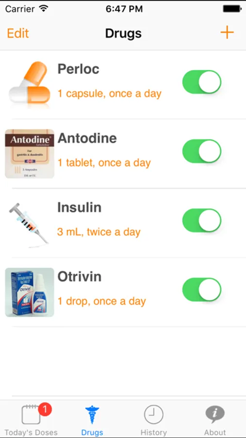 - Multiple Drug types: DoseOrganizer supports tablets, capsules, syrups, injections, inhalers, drops, ointments, creams, and patches. The type of the drug is specified when subscribing it, or can be edited afterward.