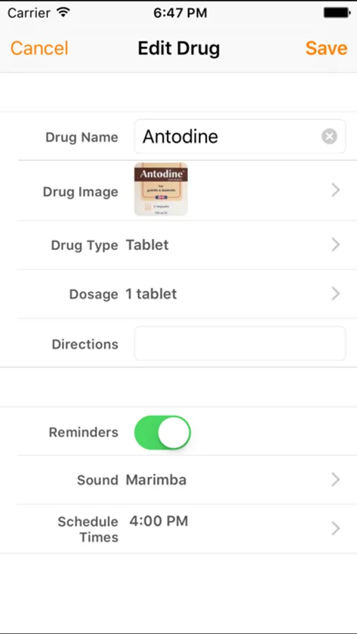 - Customizable Dose Amounts and Instructions: user can set the drug name, dosage information, and instructions given by the doctor, these instructions will appear in the reminders that show up for each dose.