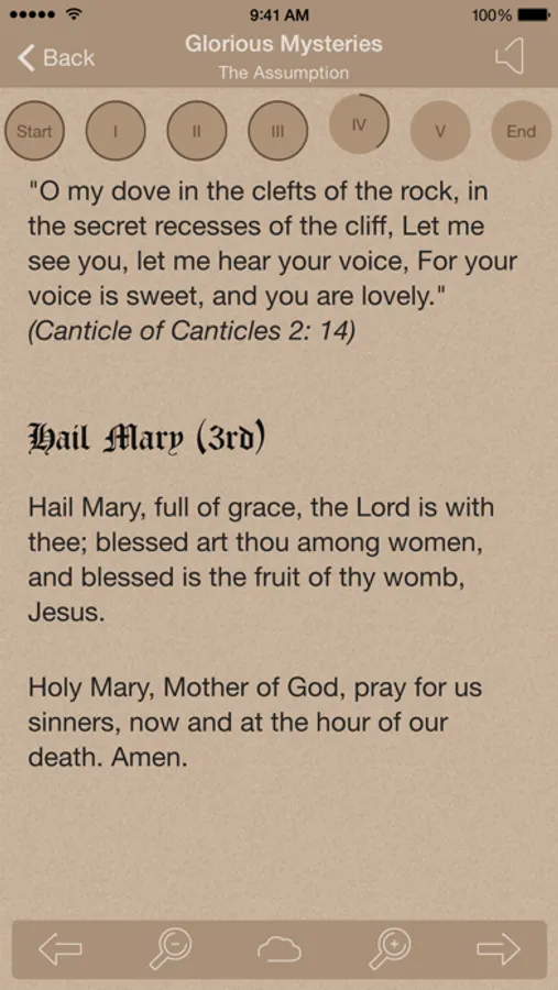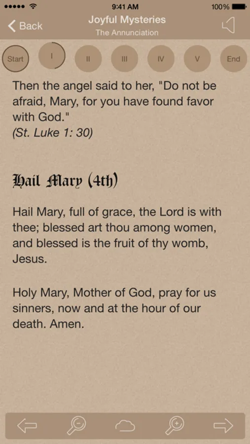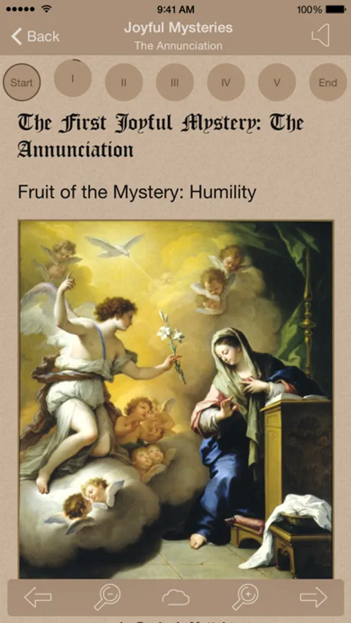 This app is a great way of praying the Rosary, because each Hail Mary is preceded by short scripture verses. These promote meditative prayer; it is easier to keep focused on each mystery.