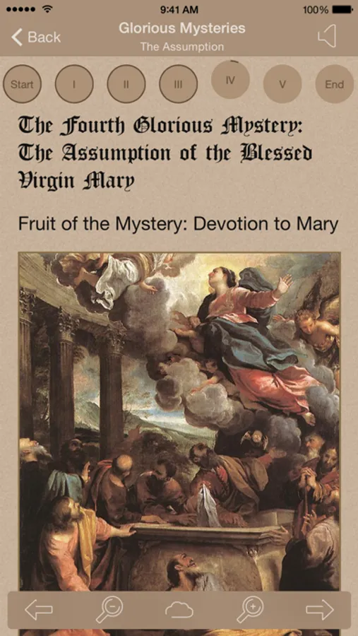 If you forget which mystery to pray, do not worry because the app will automatically show the correct mystery for each day of the week.