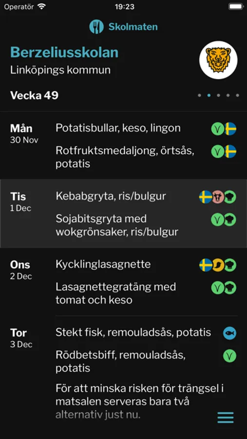 Appen visar skolmaten veckovis. Berätta för din rektor om appen och kolla om inte din skola vill ansluta sig. Appen finns idag i över 200 av Sveriges 290 kommuner.
