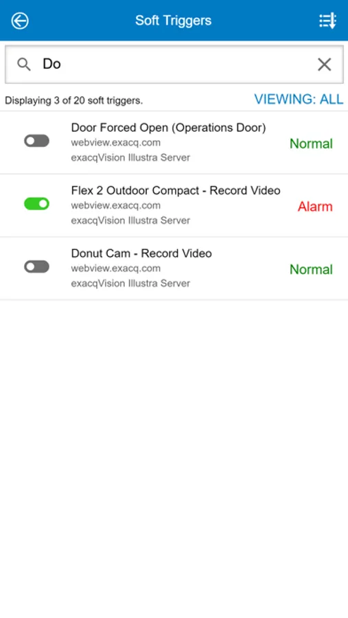 The Exacq Mobile app allows users to view live and recorded video from exacqVision IP and hybrid servers. Connect and view up to 48 surveillance cameras from multiple exacqVision servers through the free exacqVision web service. Control pan-tilt-zoom (PTZ) cameras, monitor and control triggers, view and search video, and more from your mobile device.