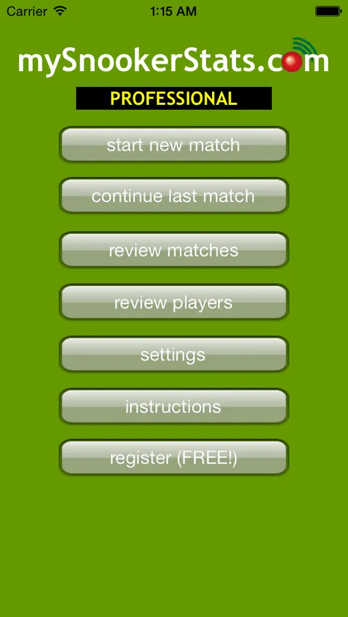 - continue matches over several sessions; in fact, you can exit the app at any time (for comfort breaks and the like!) and simply choose "continue last match" to pick up exactly where you were - even the frame timer is paused!